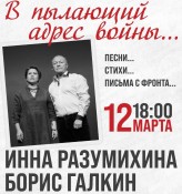 Концерт Бориса Галкина и Инны Разумихиной "В пылающий адрес войны" 12 марта переносится на 14 мая.