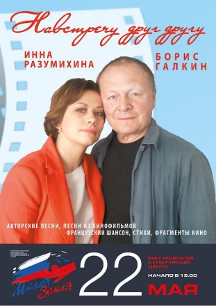 Афиша «Навстречу друг другу» творческий вечер-концерт Бориса Галкина и Инны Разумихиной. Фестиваль «Малая земля».