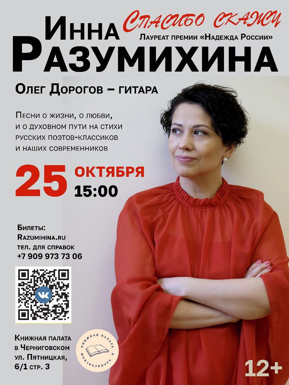 "Спасибо скажу" Творческий вечер-концерт Инны Разумихиной Инна Разумихина Олег Дорогов Концерты сезона 2024 - 2025